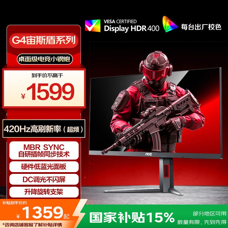 1080P 420Hz 超频,1599 元 AOC 推出“25G4K”24.5 英寸显示器